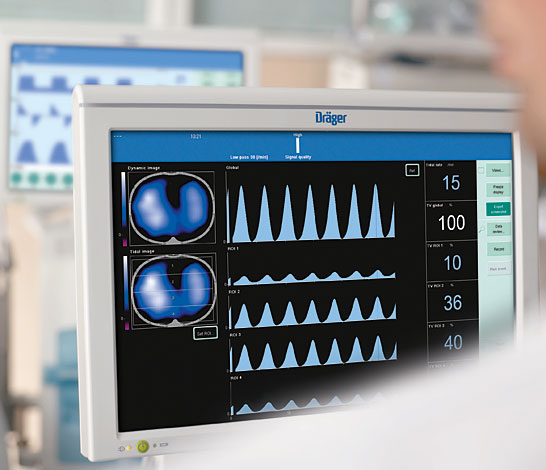 With the PulmoVista® 500, you can visualise regional air distribution within the lungs – non-invasive, in real time and directly at bedside.